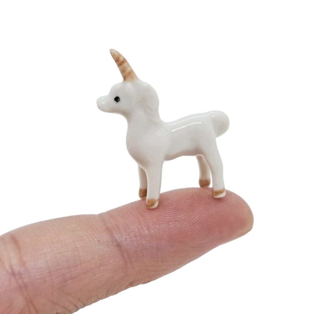 WitnyStore 1" White Stand Unicorn Ceramic Mythical Horse Figurine for Terrarium Decoration Collectible Statue for Adult Collectors Handcrafted Porcelain Sculpture Home Room Tabletop Decor