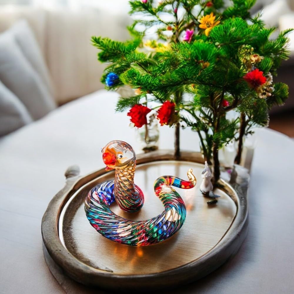 - ELEGANT GLASS SCULPTURE FOR DISPLAY: Measuring approximately 2" Wide x 2¼" Long x 1¾" High, this glass snake art piece is ideally scaled for sophisticated display on a desk, bookshelf, or curated collection cabinet.