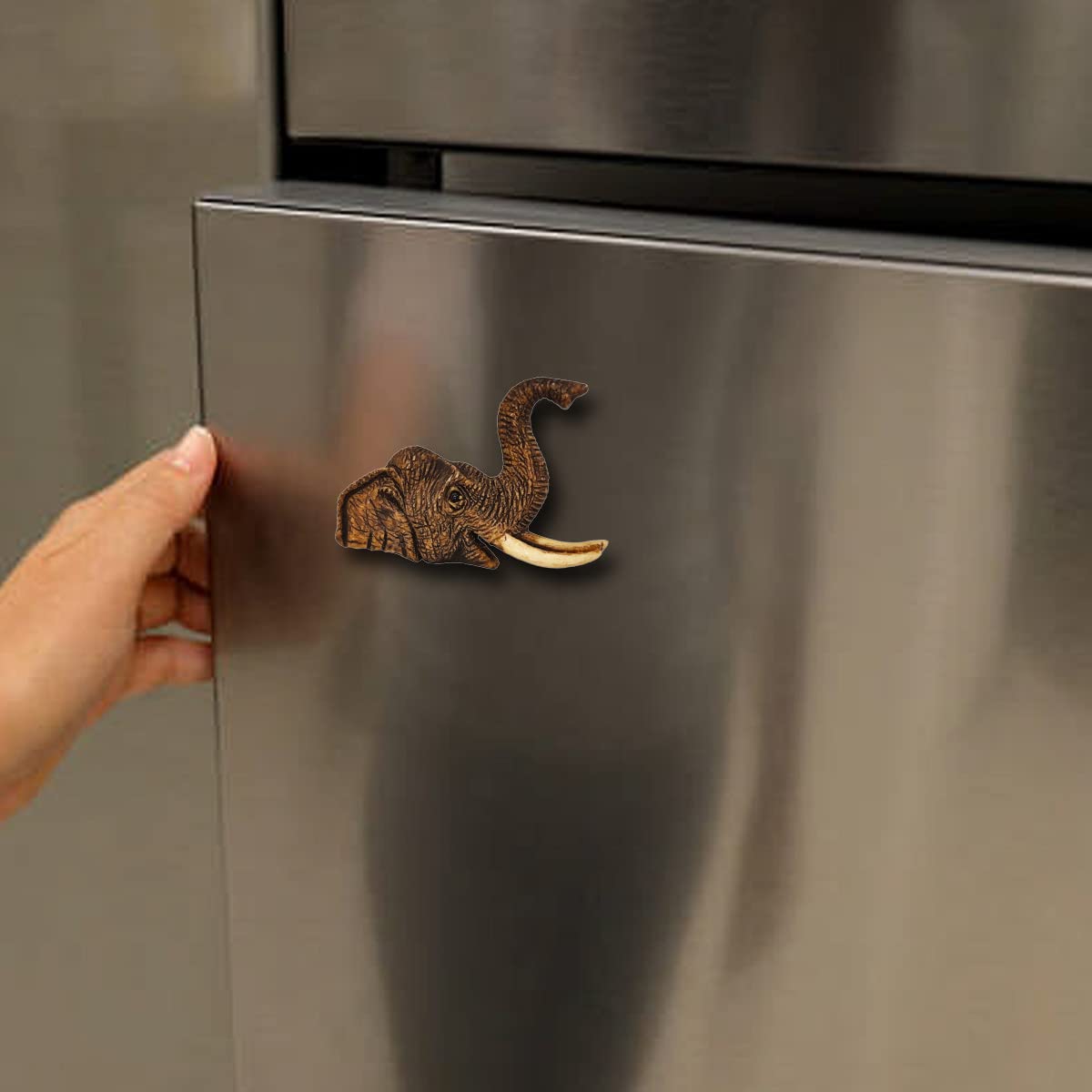 WitnyStore 2⅜" Side View Brown Elephant Head Trunk Up Refrigerator Magnet Exotic Handcrafted Resin Collectibles for Adult Collectors Decorative Kitchen Fridge Magnets Thailand Souvenir Decor Gifts