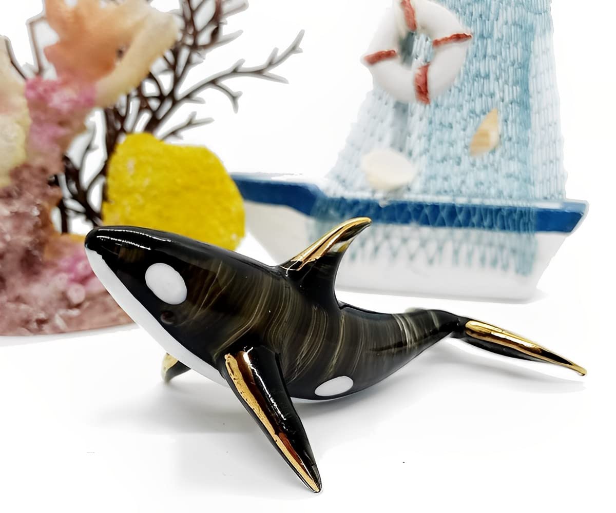 WitnyStore 3½" Black White Looking Up Orca Killer Whale Artistic Blown Glass Figurine Premium Statue Tabletop Decoration Unique Collectible for Adult Collectors Handcrafted Elegant Home Room Decor