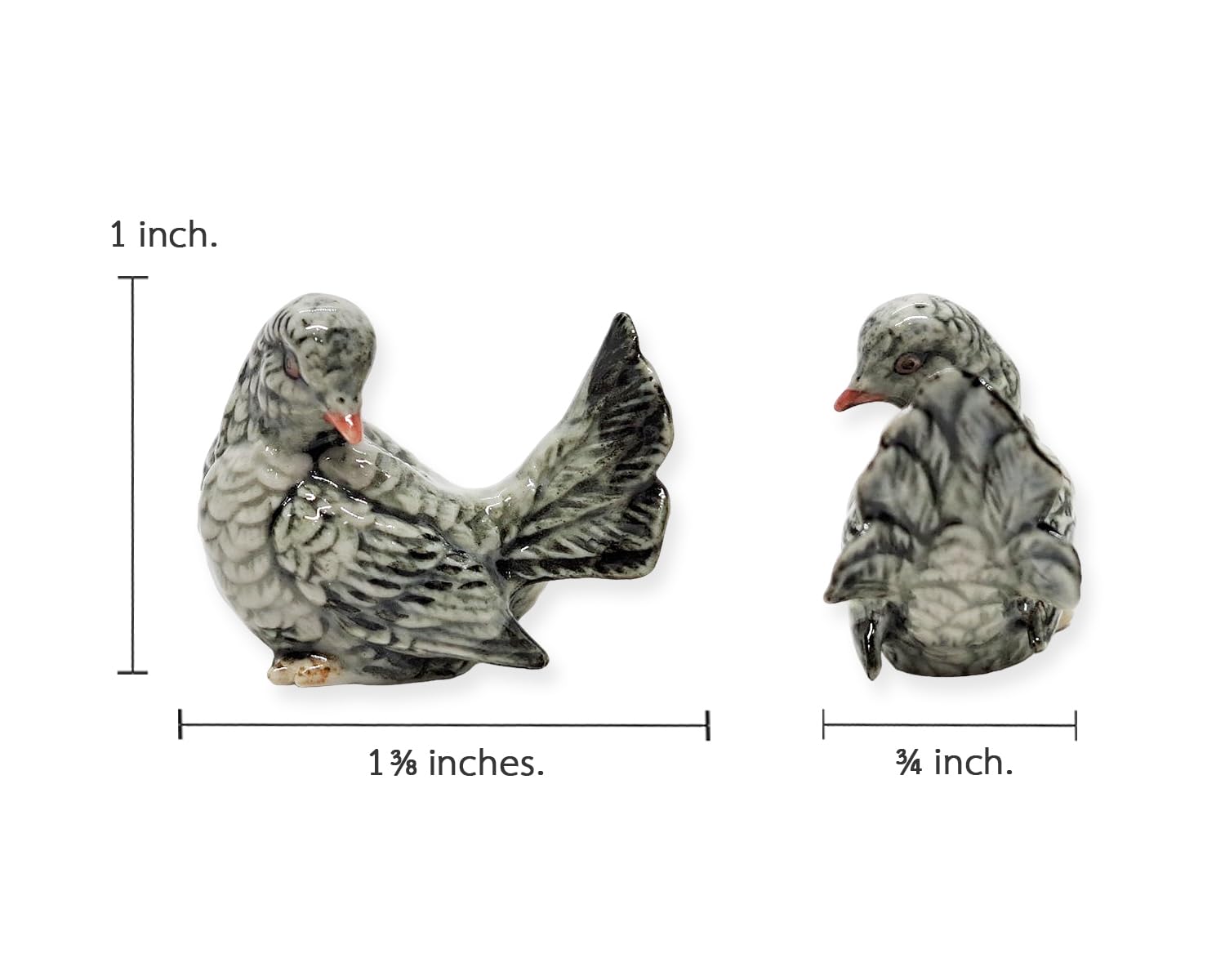 WitnyStore Tiny 1⅜" Gray Looking Back Pigeon Dove Bird Figurine - Miniature Hand Made Painted Ceramic Birds Aves Colorful Porcelain Feathered Animals Cute Decorative Collectible Figures Décor Gifts