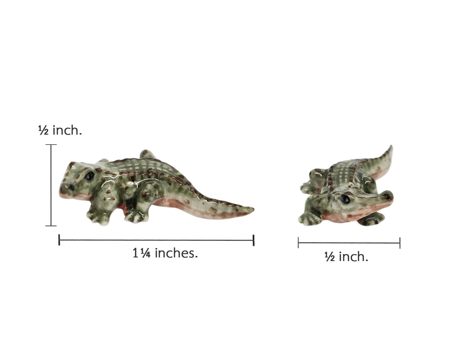 - IDEAL SIZE FOR DISPLAY: Measuring approximately ½" Wide x 1¼" Long x ½" High. This miniature crocodile statue seamlessly fits into any home decor, complementing other reptile figures and figurines.