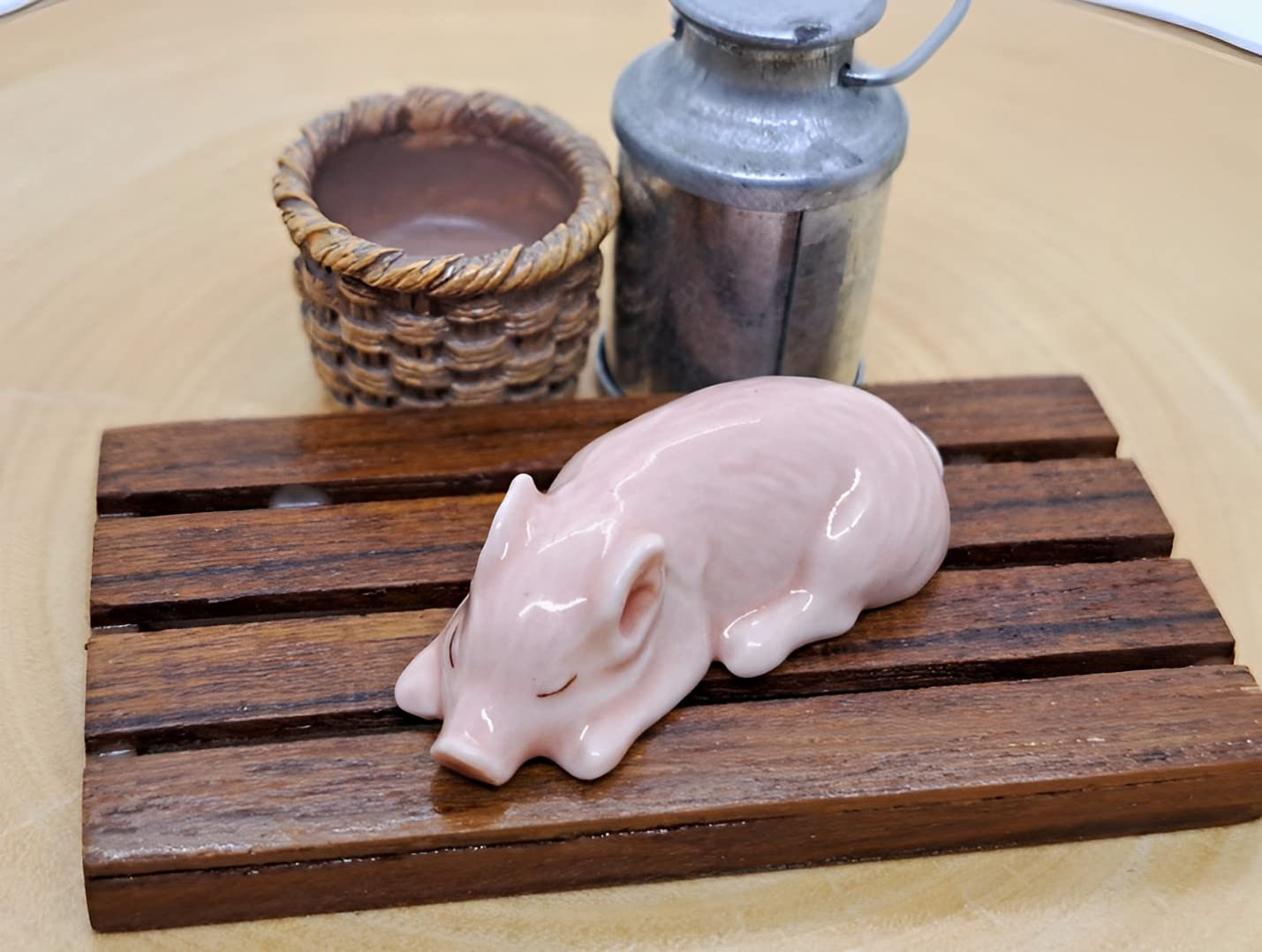 WitnyStore Tiny 1¾" Long Pink Sleeping Baby Pig Figurine - Miniature Hand Made Painted Ceramic Pigs Swine Hog Piglet Livestock Farm Animals Cute Porcelain Decorative Collectible Figures Décor Gifts