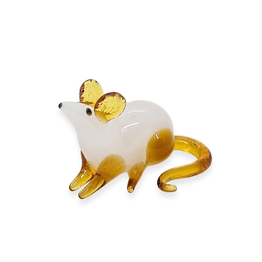 WitnyStore Tiny 1⅜" Long White Crouching Mouse Figurine - Miniature Hand Blown Painted Glass Mice Rat Shrew Rodent Small Crystal Animals Cute Decorative Figures Collectible Figurines Home Décor Gifts