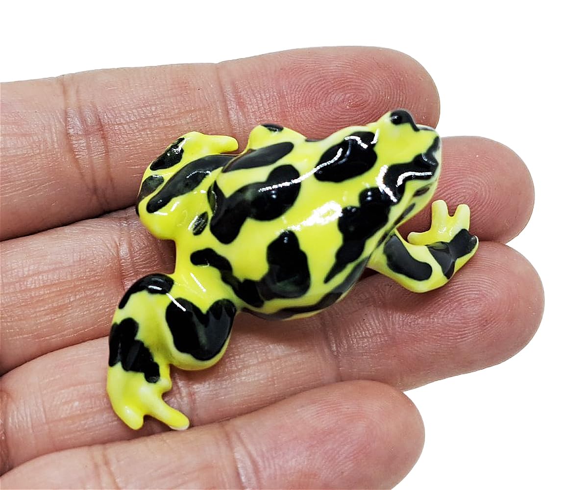 WitnyStore Tiny 1⅞" Yellow Black Patched Crawling Frog Figurine - Miniature Hand Made Painted Ceramic Frogs Toad Amphibian Animals Colorful Porcelain Decorative Collectible Figure Souvenir Décor Gifts