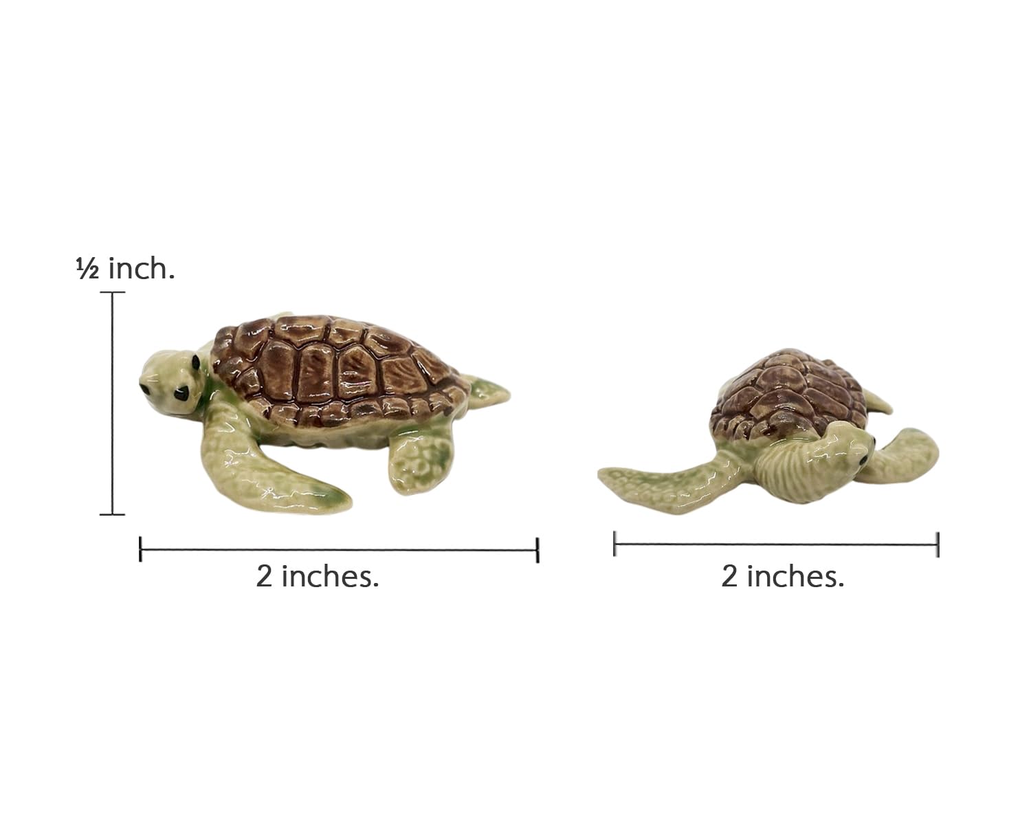 WitnyStore Tiny 2" Brown Green Look Back Sea Turtle Figurine - Miniature Hand Made Ceramic Turtles Tortoise Terrapin Chelonian Testudines Animals Porcelain Decorative Collectible Figurines Décor Gifts