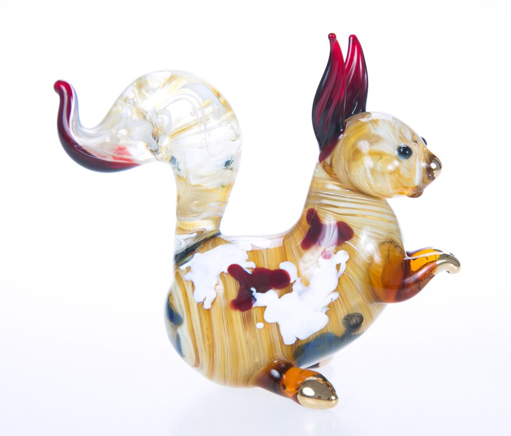 WitnyStore Tiny 3" Brown White Red Squirrel Sitting Figurine - Miniature Hand Blown Painted Glass Squirrels Chipmunk Sciuridae Rodents Crystal Animals Cute Decorative Collectible Figurines Décor Gifts—