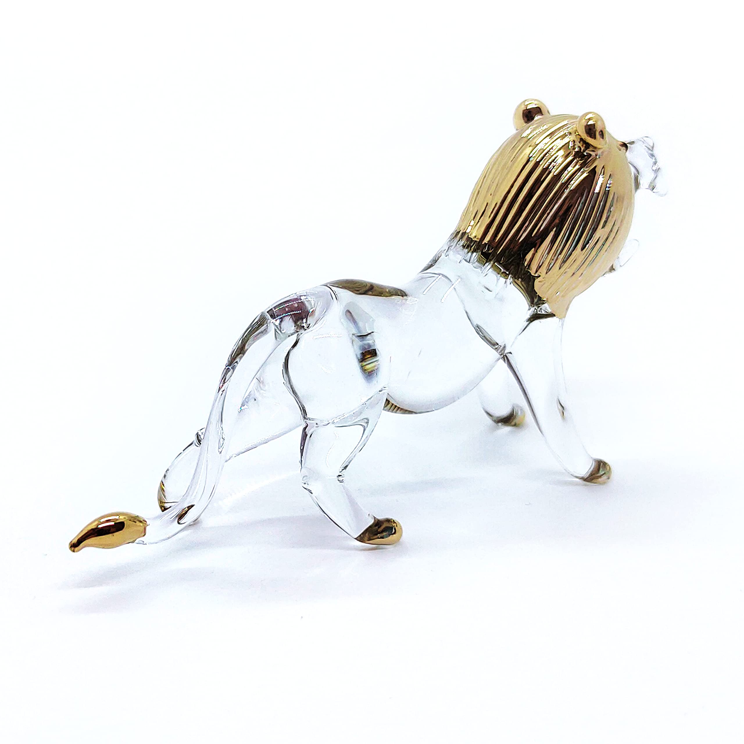 WitnyStore Tiny 3¼" Long Clear Gold Standing Lion Roaring Figurine - Miniature Hand Blown Painted Glass Panthera Wild Cat Small Crystal Wildlife Animals Decorative Collectible Figurines Décor Gifts