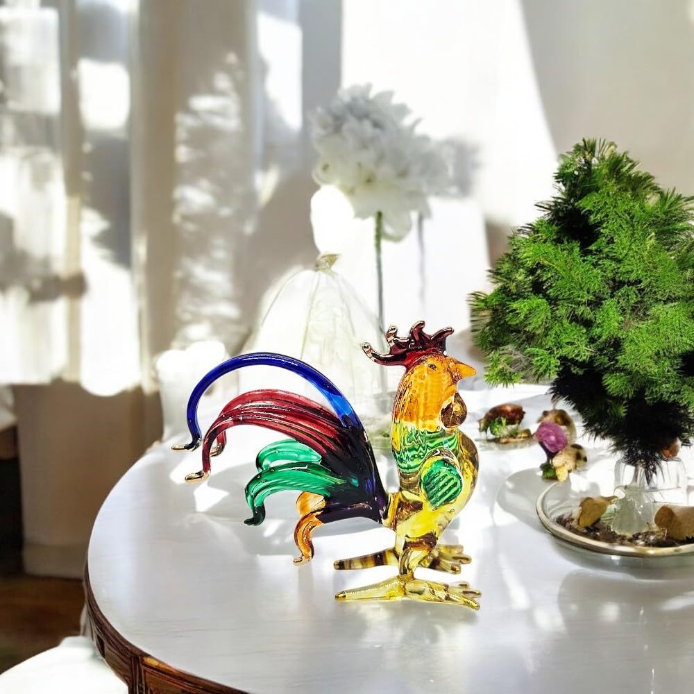 WitnyStore Tiny 3" Yellow Multicolor Standing Rooster Figurine - Miniature Hand Blown Painted Glass Chicken Hen Chick Fowl Poultry Bird Farm Animals Crystal Decorative Collectible Figure Décor Gifts