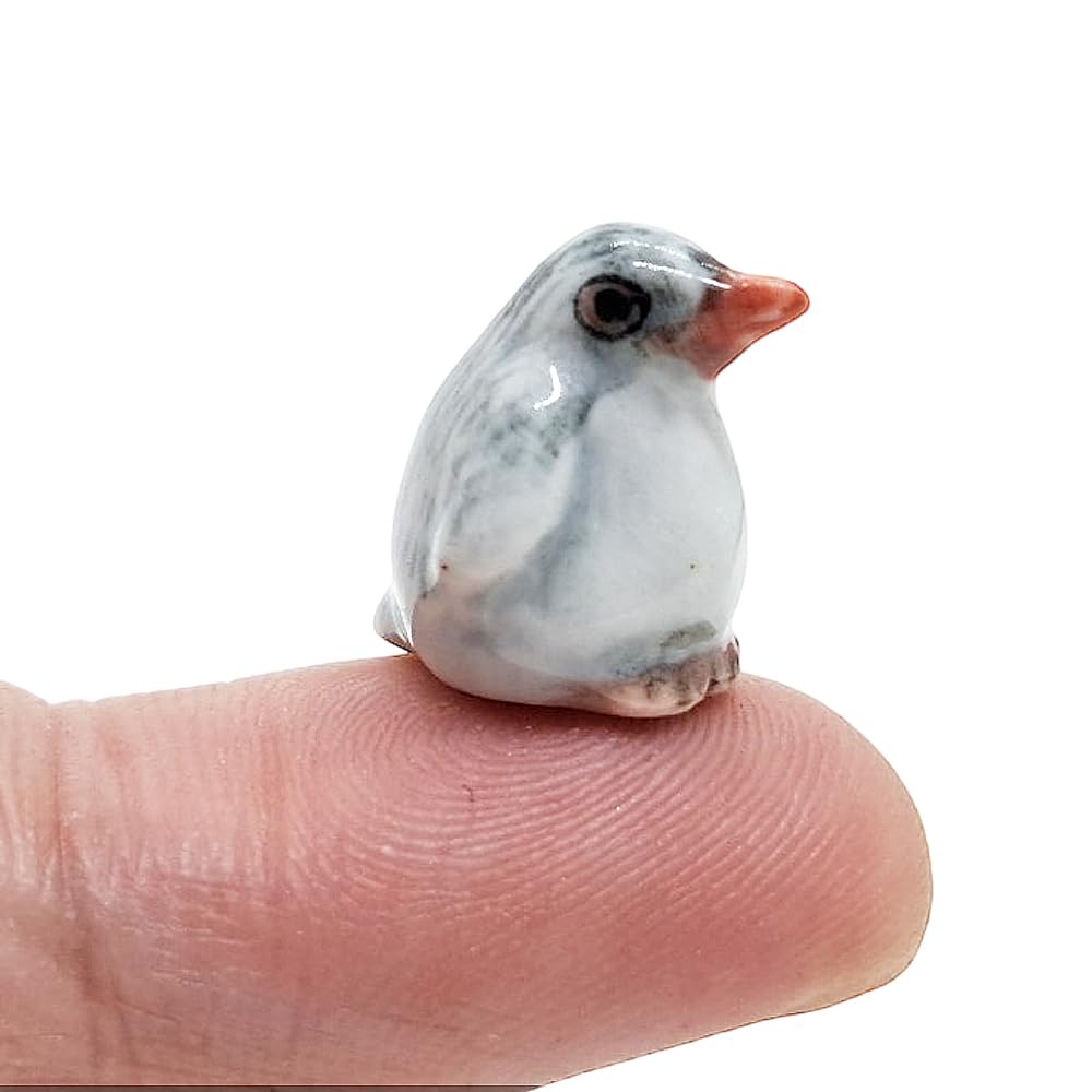 WitnyStore Tiny ½ Inch Gray Baby Gentoo Penguin Sit Figurine - Miniature Hand Made Ceramic Aquatic Flightless Marine Bird Antarctic Polar Animals Porcelain Decorative Collectible Figure Décor Gifts